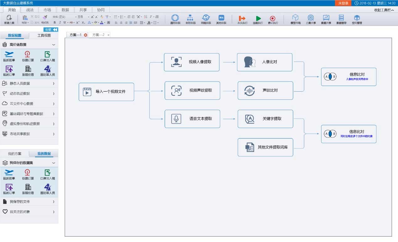 1、為用戶提供完全自由的思維推演平臺,遞進式交互分析過程高度靈活與自主設(shè)計,用戶可以用自己的分析思路操作、分析、挖掘海量數(shù)據(jù)資源。 2、可以直接獲取同網(wǎng)絡(luò)內(nèi)各類數(shù)據(jù)接口、關(guān)系數(shù)據(jù)庫、云平臺、文件數(shù)據(jù)資源,本地臨時數(shù)據(jù)資源、第三方平臺數(shù)據(jù),集成用戶方的所有可訪問數(shù)據(jù)資源。 3、可同時驅(qū)動結(jié)構(gòu)化數(shù)據(jù)、半結(jié)構(gòu)化數(shù)據(jù)、文本數(shù)據(jù)、人像數(shù)據(jù)、視音頻數(shù)據(jù),實現(xiàn)多源異構(gòu)數(shù)據(jù)的混合建模、混合推演。 4、建立一套邏輯數(shù)據(jù)模型,可以將不同網(wǎng)絡(luò)、不同存儲類型、不同存儲位置、不同數(shù)據(jù)種類的各種對象、要素、碼址、關(guān)系有機的整合起來,與專家?guī)煜到y(tǒng)進行統(tǒng)一識別和關(guān)聯(lián)。 5、建立對數(shù)據(jù)資源、目標名單、專家?guī)熘R(戰(zhàn)法、模型、其他)的統(tǒng)一安全管理體系,包括:功能授權(quán)、數(shù)據(jù)授權(quán)、知識授權(quán)、范圍授權(quán)、時間授權(quán)、實時審計、事后審計、績效統(tǒng)計等。 6、建立對數(shù)據(jù)集合的多維展示、分析、探索能力,包括但不限于集合列表、多維統(tǒng)計、關(guān)系視圖、GIS展示等。 7、建立專家?guī)煜到y(tǒng),創(chuàng)建業(yè)務(wù)戰(zhàn)法、模型、經(jīng)驗共享應(yīng)用的生態(tài)圈,提供業(yè)務(wù)創(chuàng)新土壤;通過授權(quán)等安全控制后,模型可以直接發(fā)布使用或被第三方系統(tǒng)調(diào)用。